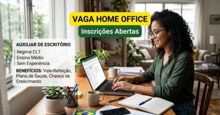 Home office com ensino médio e sem experiência abre 2 vagas para auxiliar de escritório em regime CLT com benefícios e chance de crescimento 1 de abril de 2026 - Ana Paula Araújo Home Office
