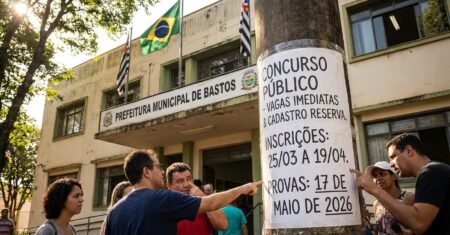 Concurso em Bastos SP abre 6 vagas imediatas e cadastro reserva com salários de até R$ 15,7 mil, inscrições entre 25 de março e 19 de abril e provas em [...] 24 de março de 2026 - Valdemar Medeiros Concursos Públicos