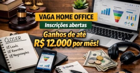 Vaga remota de Vendedor (Closer) na Mega Ads Marketing Jurídico tem fixo no teste e comissões, com atuação em vendas para escritórios de advocacia