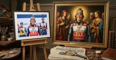 Foto do pódio de Lucas Braathen é eleita a mais bonita dos Jogos de Inverno e vira pintura renascentista em homenagem ao feito histórico do Brasil