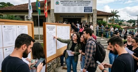 Concurso Guaramirim tem classificações finais publicadas e mantém 62 vagas com salários de até R$ 20,5 mil em Santa Catarina 31 de março de 2026 - Valdemar Medeiros Concursos Públicos