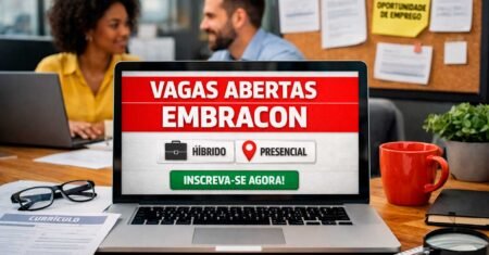 Embracon abre processo seletivo com 28 vagas híbridas e presenciais em áreas administrativas com inscrições pela Gupy 21 de janeiro de 2026 - Geovane Souza Vagas de Emprego