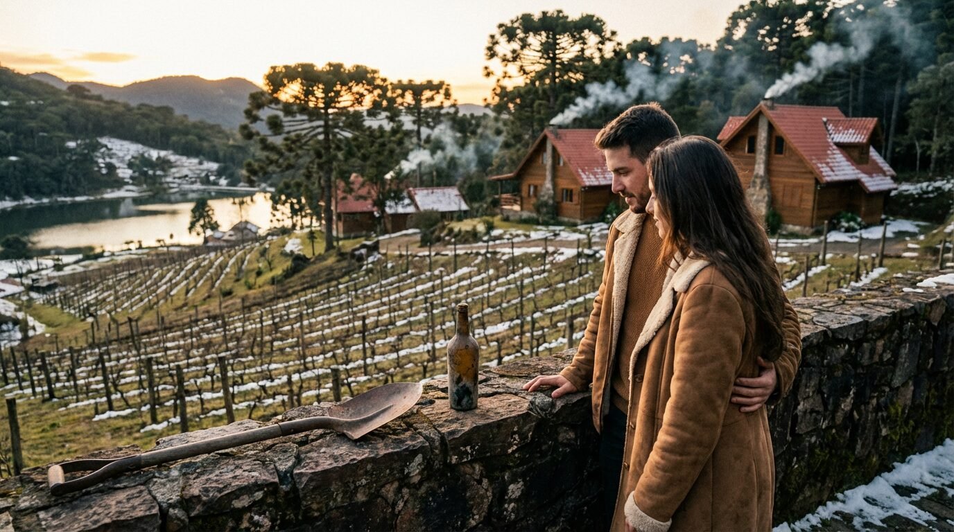 Do barulho da cidade ao silêncio das cigarras, a história do casal que trocou a pressa por um vinhedo boutique em Urupema com chalés, exclusividade e frio inspirador