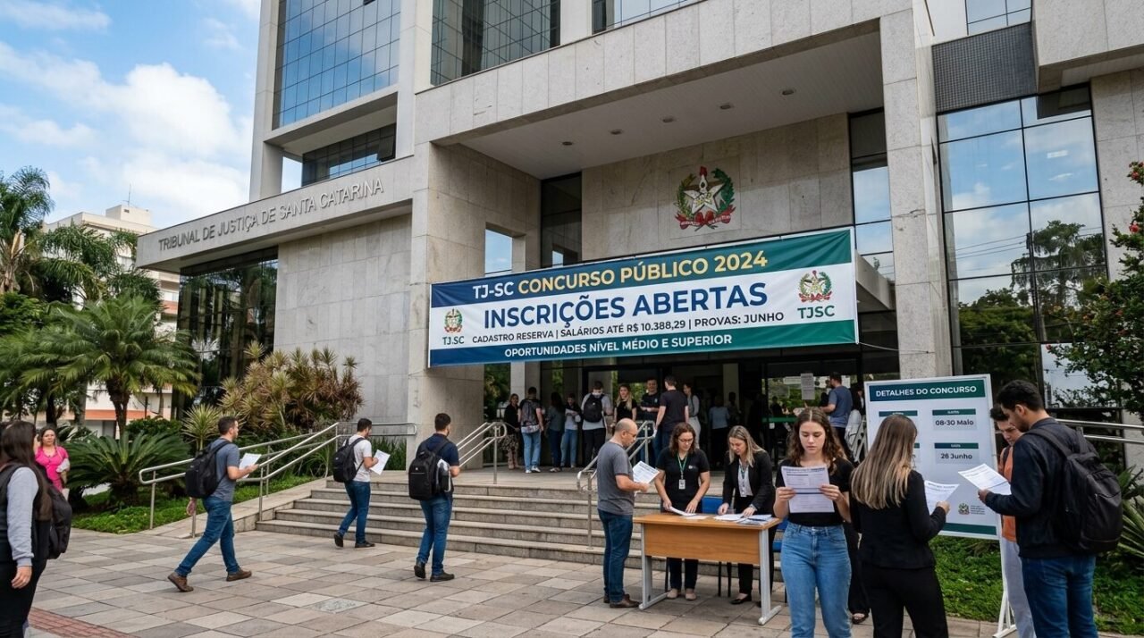 O Tribunal de Justiça de Santa Catarina abriu nesta quarta-feira, 1º de abril de 2026, as inscrições para um novo concurso público com formação de cadastro reserva. Os salários variam de R$ 6.034,81 a R$ 10.388,29, o que coloca o certame entre os mais relevantes do momento no estado.