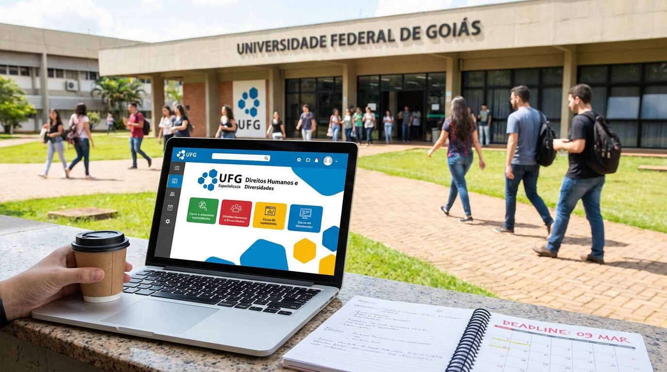 As inscrições podem ser feitas até 09/03/2026, diretamente no sistema da UFG. Segundo o edital disponível no portal da UFG, o processo é totalmente online, e as aulas ocorrerão no Ambiente Virtual de Aprendizagem, o AVA.
