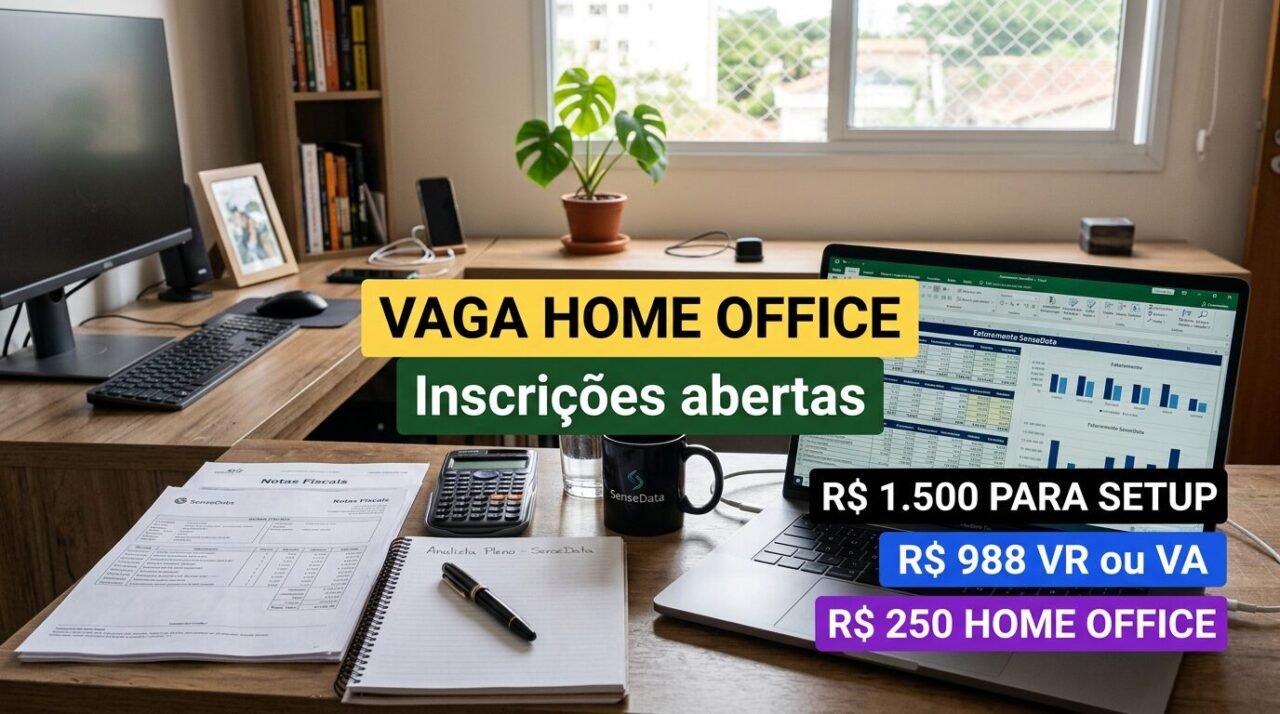 Oportunidade 100% remota para analista de faturamento pleno na SenseData, contratação CLT com pacote robusto de benefícios e valores em dinheiro para home office
