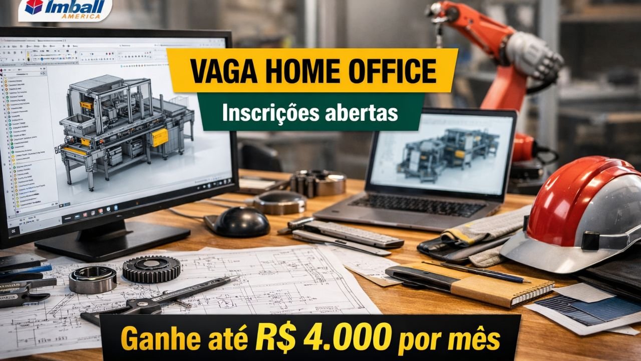Vaga de Projetista Mecânico remoto na Imball America oferece trabalho part time no Brasil com foco em automação industrial e remuneração de R$ 4 mil por mês