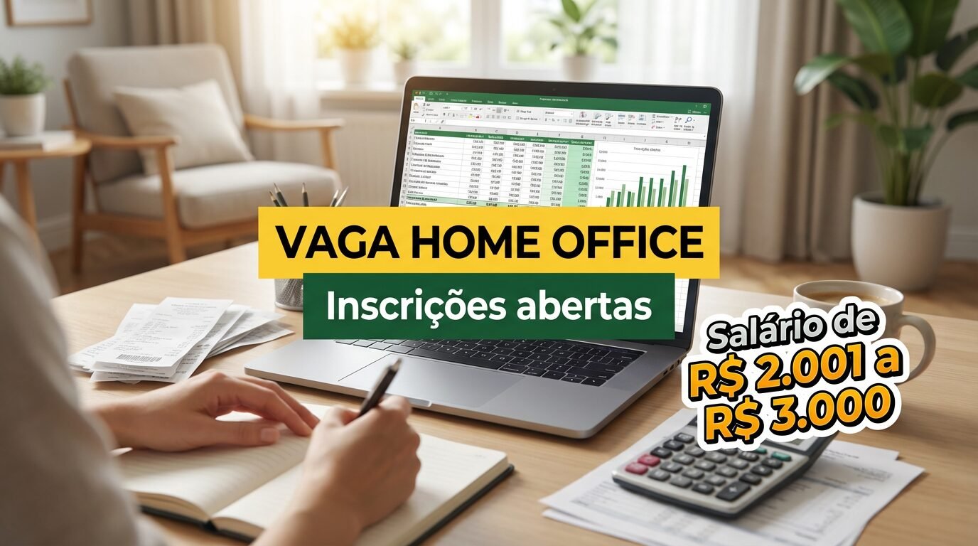 Vaga home office de assistente administrativo financeiro, faixa salarial de R$ 2.001 a R$ 3.000