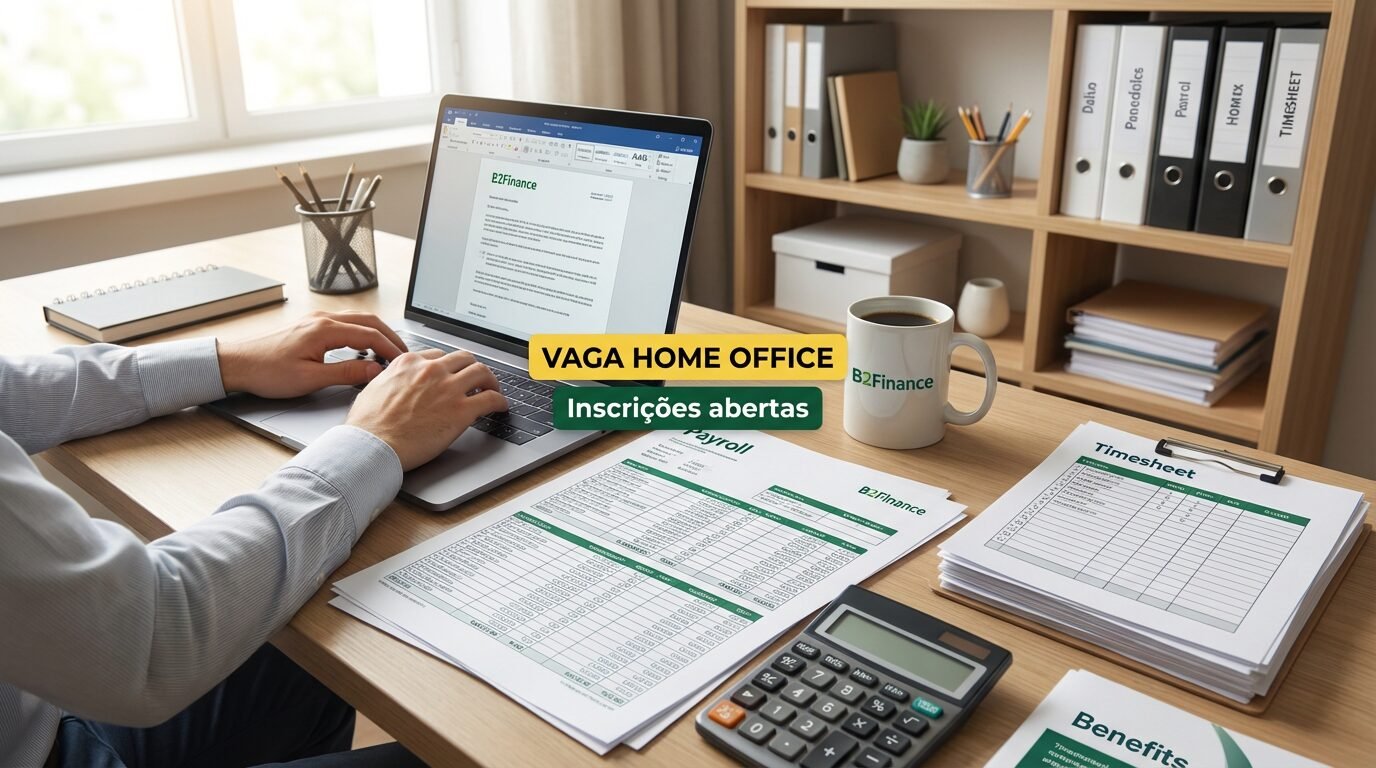 A B2Finance abriu vaga em modelo home office para o cargo de Assistente de Departamento Pessoal. A posição é de tempo integral e com contratação CLT, voltada a profissionais com vivência em rotinas de DP.