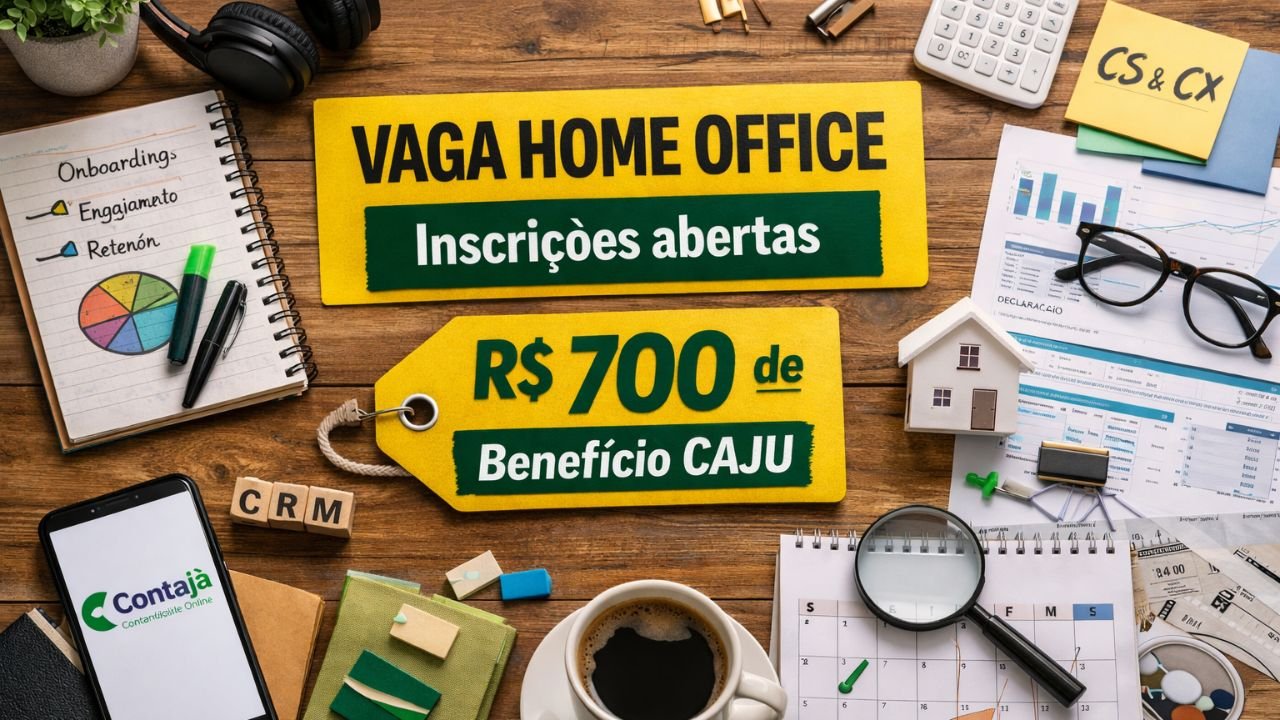 Entre os benefícios, o anúncio destaca o Cartão Caju de R$ 700 por mês, com uso flexível, que costuma chamar atenção em buscas por vagas home office com pacote mais robusto. A empresa também informa Plano de Saúde Unimed 100 por cento pago pela Contajá, com coparticipação apenas quando houver uso.