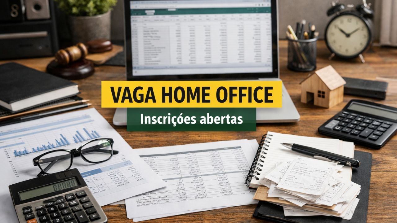 Para quem busca emprego home office na área contábil, o anúncio detalha atividades ligadas a registros financeiros, conferências de contas e apoio no fechamento do período.