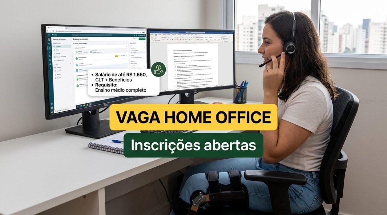 Oportunidade de trabalho remoto para atendimento ao cliente reúne salário de até R$ 1.650, contratação CLT e benefícios em vaga exclusiva para pessoas com deficiência