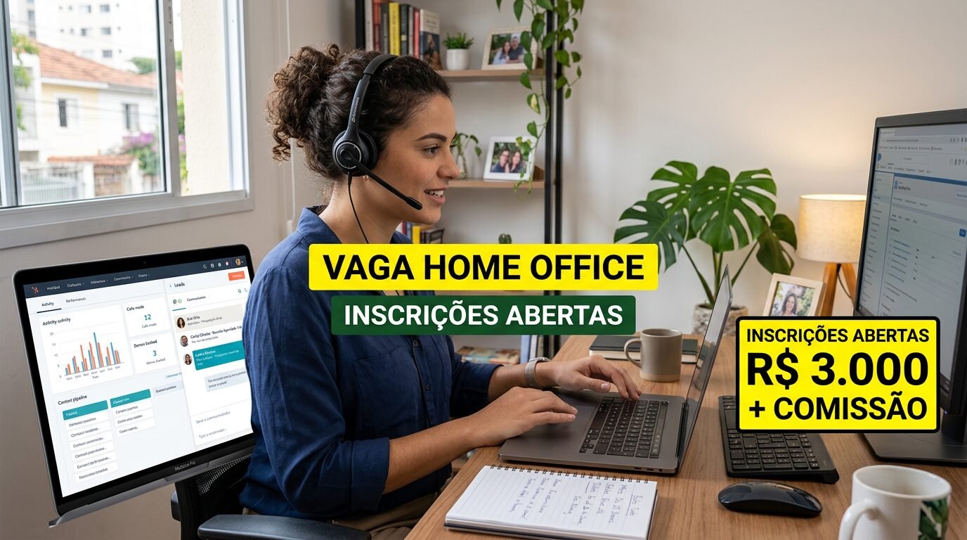 Além do salário fixo, a vaga também prevê comissionamento por agendamentos e reuniões realizadas. O trabalho é em home office, com jornada parcial no período da tarde, e há apenas 1 vaga disponível.