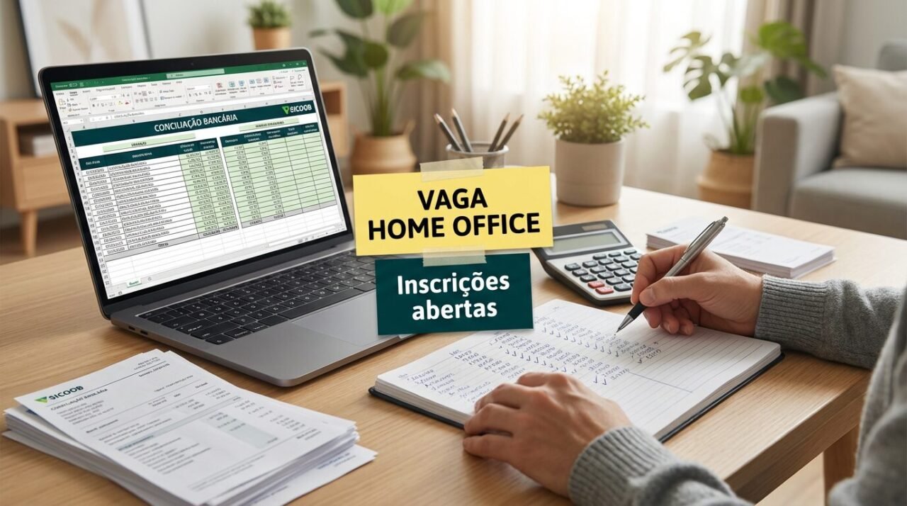 O Sicoob abriu vaga home office para o cargo de assistente financeiro de conciliação com contratação CLT e horário comercial. A oportunidade aparece vinculada à base de Brasília DF, mas com atuação remota em tempo integral. Segundo a descrição da vaga publicada no LinkedIn e consultada em 5 de março de 2026, as inscrições estão abertas e a procura é alta.