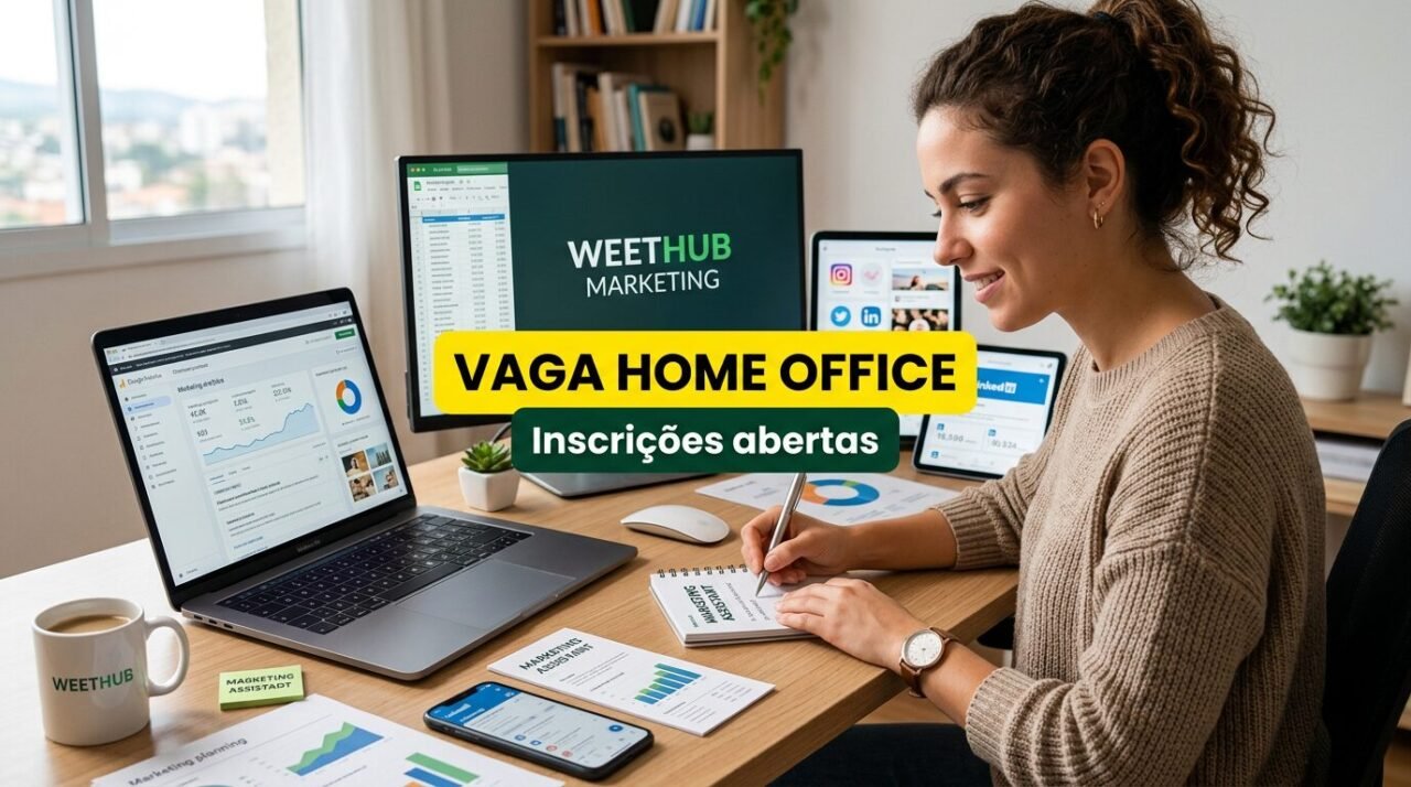 A oportunidade divulgada é para o cargo de Assistente de Marketing na Weethub, empresa identificada como aceleradora de e-commerce. O posto está localizado em Divinópolis, MG, município que segue concentrando vagas em áreas administrativas, comerciais e digitais.